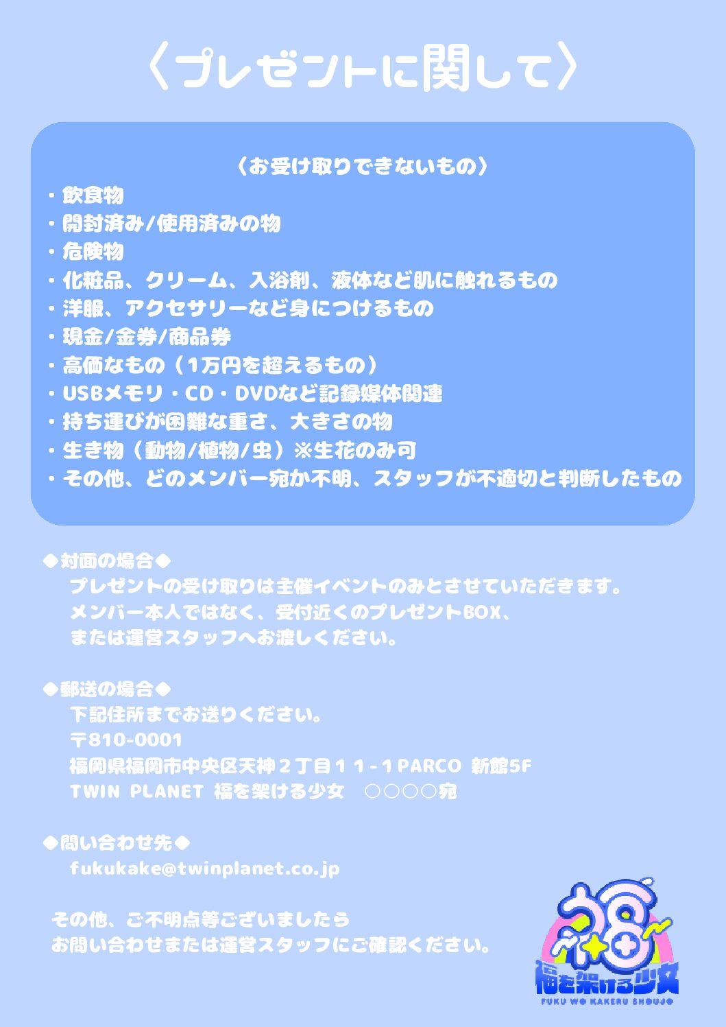いつも福を架ける少女のメンバーにプレゼントを頂きありがとうございます。